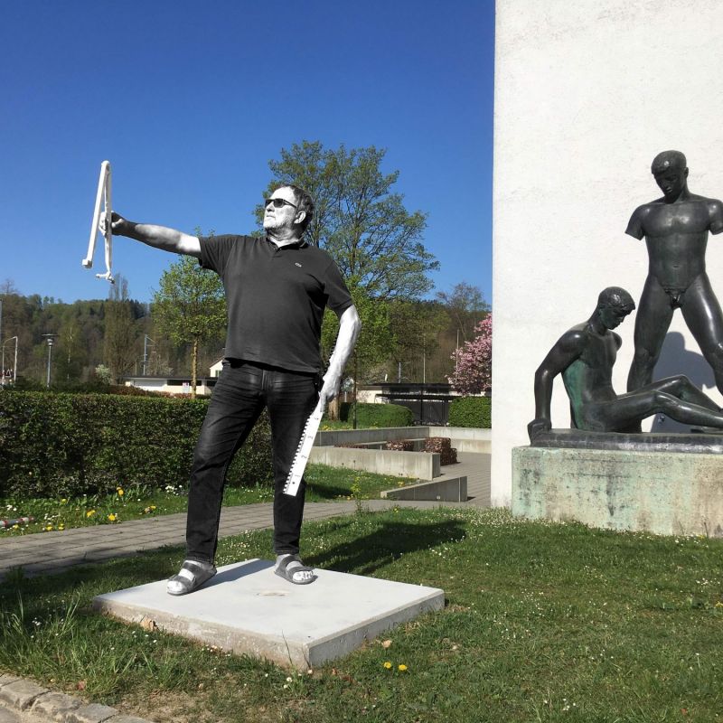 Nach einer langen Vertröstungsphase und der Installation eines Provisoriums (siehe Bericht Statuen), ist das neue Leitbild der Schulen Zell in metallgewordener, drehbarer Pracht vor der Engelburg zu bestaunen. Dass die Verspätung auf das nachträgliche Hinzufügen des Leitsatzes „Wir tragen Schutzmasken” zurückzuführen ist, wird schon länger gemunkelt — nicht hinter vorgehaltener Hand, sondern ganz modern hinter einer Coronamaske.