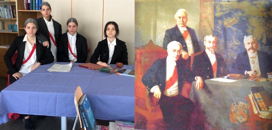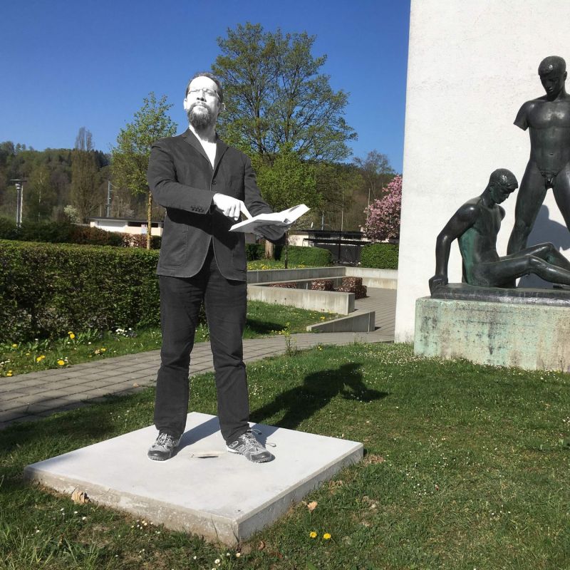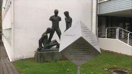 Nach einer langen Vertröstungsphase und der Installation eines Provisoriums (siehe Bericht Statuen), ist das neue Leitbild der Schulen Zell in metallgewordener, drehbarer Pracht vor der Engelburg zu bestaunen. Dass die Verspätung auf das nachträgliche Hinzufügen des Leitsatzes „Wir tragen Schutzmasken” zurückzuführen ist, wird schon länger gemunkelt — nicht hinter vorgehaltener Hand, sondern ganz modern hinter einer Coronamaske.